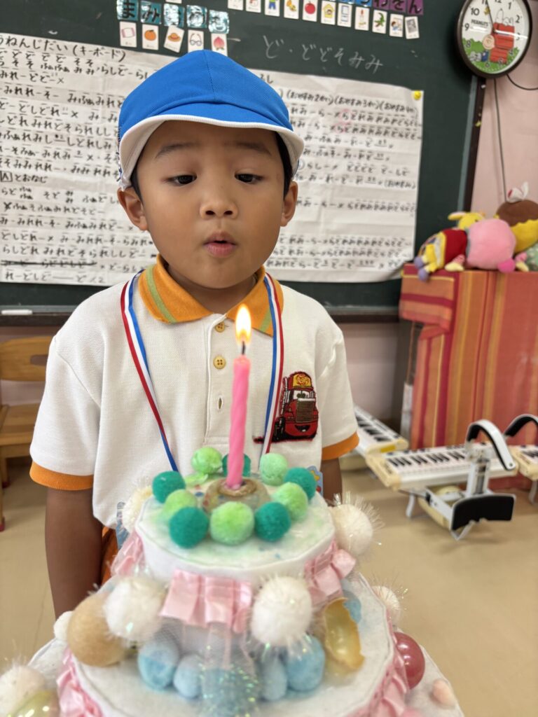 祝日の日にお誕生日を迎えるお友達の誕生日会を月曜日に行いました🎶5歳になりました!
