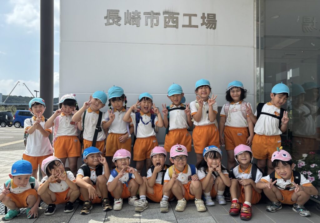今日は、神の島にある長崎西工場へ、ゴミ処理について学びに行ってきました♪お菓子やご飯を作る時のゴミなどがどこに行って、どうやって処理されるのか…興味津々の子どもたち😊まずは、工場の中の機械や働きをDVDで、勉強をし、次に工場内の見学へ🏭一箇所ずつ丁寧に説明を受けながら、気になったことを質問するかもめ組の子どもたち。さすが、年長組です‼️