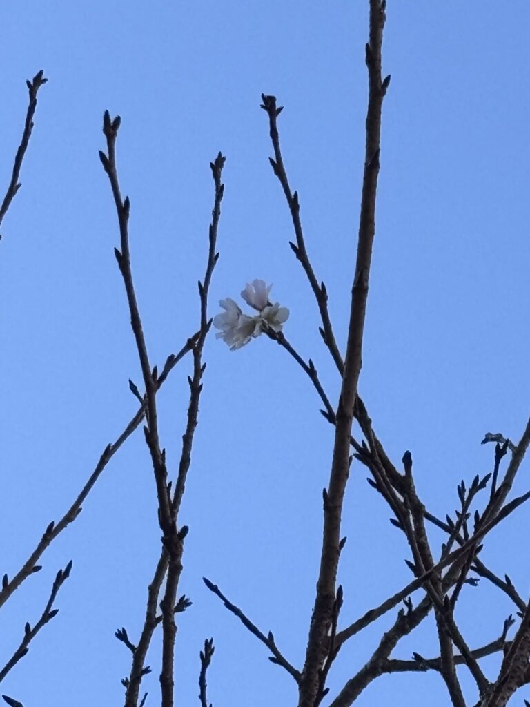 お知らせ 11月6日⭐︎園庭で発見!⭐︎ 2025年11月6日 園庭の桜の木のてっぺん付近に、桜の花が咲いているのを園長先生が発見されました💡日に日に寒くなっていますが、一輪の桜を見ると心が温まりました😊