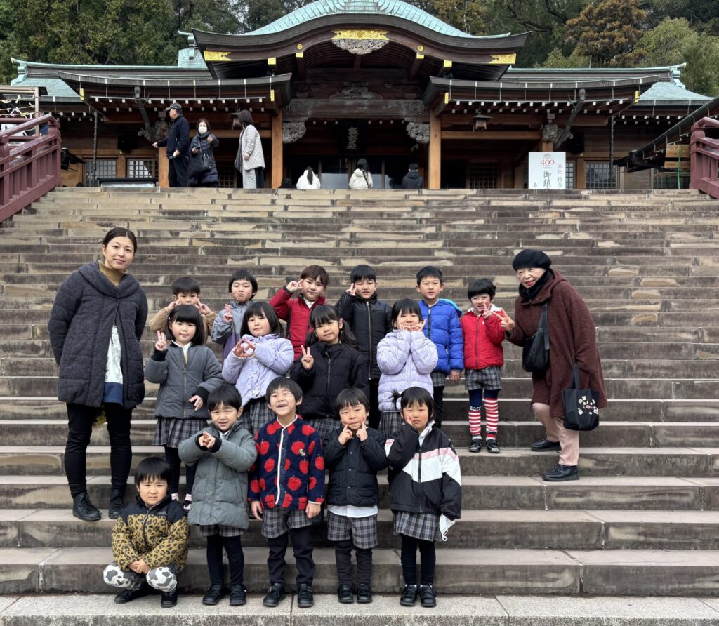 そして、9日の今日は、諏訪神社へ初詣に行きました♪長い階段をゆっくり登り、お賽銭を入れて、2礼2拍手1礼を全員が一緒に行い、今年1年の健康と笑顔の日々になりますようにとみんなでお詣りしてきました♪