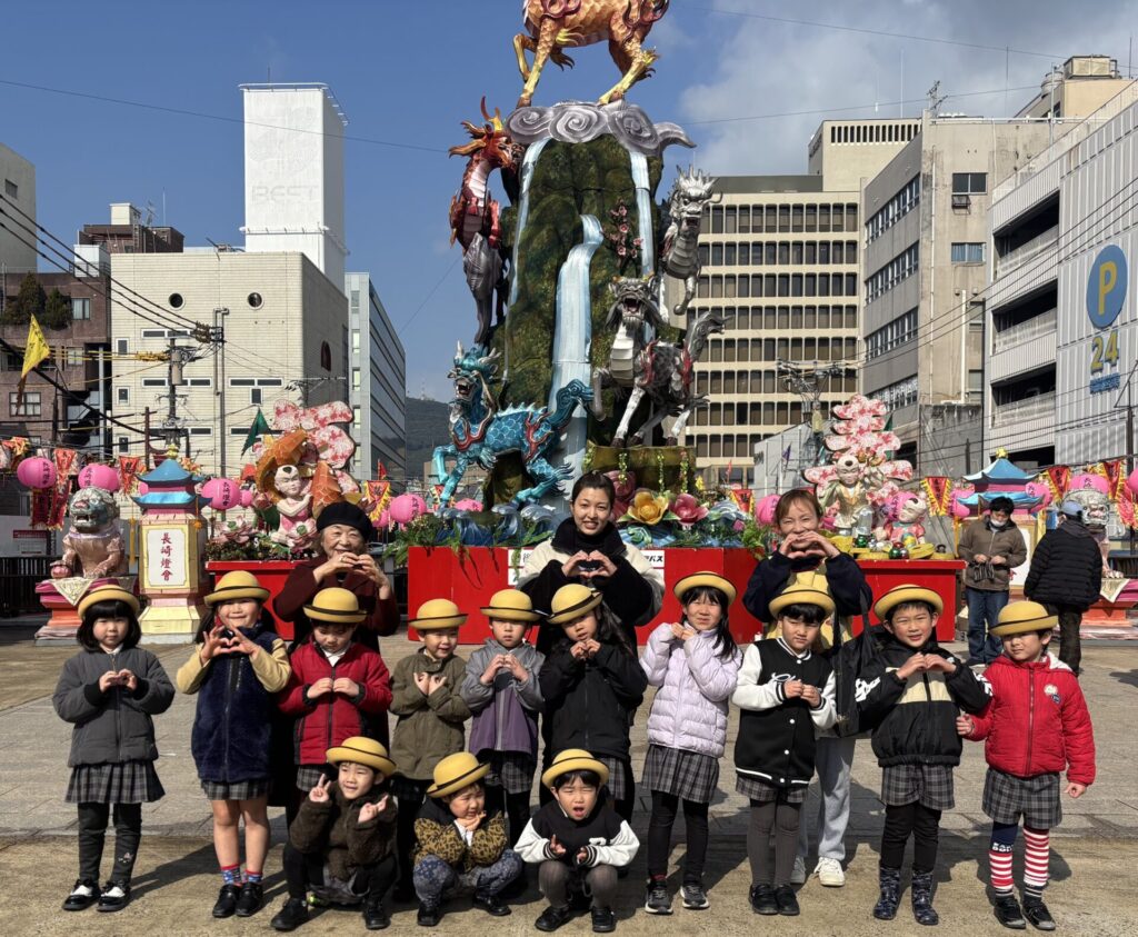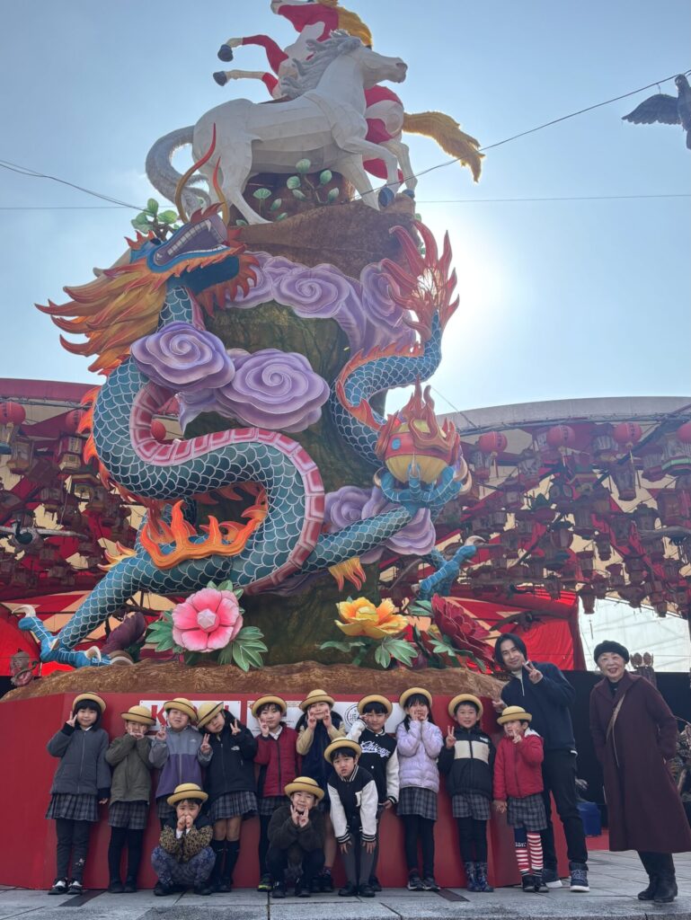 今日は、2月の園外保育で今開催中のランタンフェスティバルへ出掛けてきました(^^)天候も良くポカポカの1日となり、青空の下で綺麗に飾られたランタンの飾り付けに大興奮の子どもたちでした🎶大きな飾り付けにびっくりしたり、ピンクのランタンに可愛い〜(°▽°)と、連呼したり…楽しい散策となりました♪