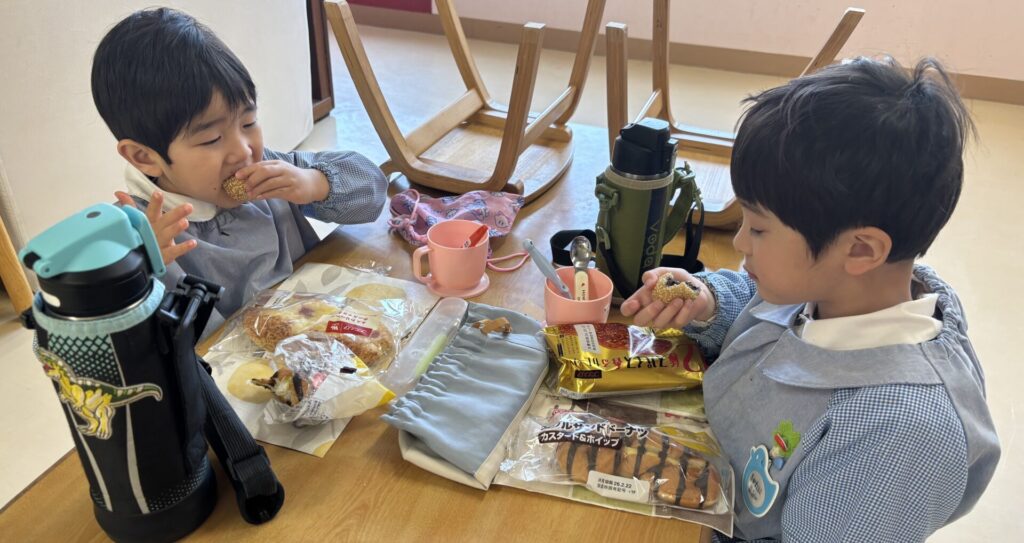 帰りに園長先生より、お土産のごま団子を全員買っていただき、お給食の時にデザートで食べました♪まだ、ほんのり温かくて美味しかったです‼️